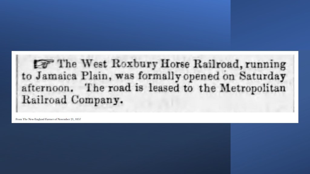 The neighborhood of Jamaica Plain became one of the first “Streetcar Suburbs” in the 19th-century, starting out in 1857 as “The West Roxbury Horse Railroad.”