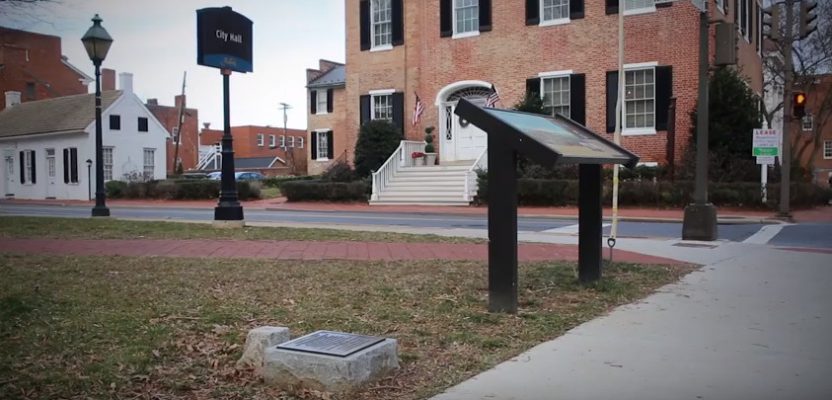 The “Compass Meridian Stones” in Frederick are on opposite sides of the lawn of the old courthouse, which is now the City Hall, and established as a North-South baseline in Maryland that surveyors used to annually check for variations in their compasses here and were required to report them to the Clerk of the Court to register them.