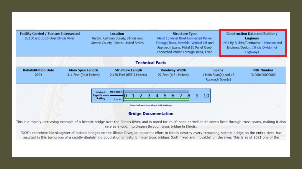 …and like the Joe Page Bridge is also listed as “Builder Unknown.”
