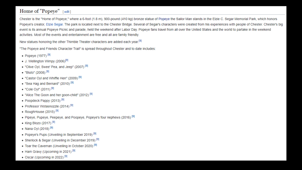 …as Chester promotes its status as “Home of Popeye.”