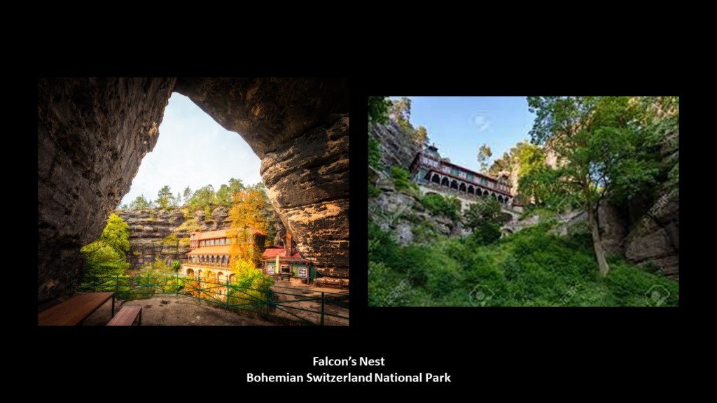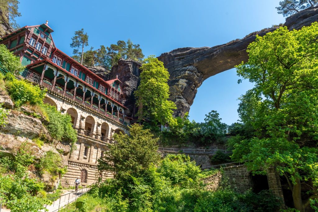 Right next to the largest natural arch in Europe is a hotel called the “Falcon’s Nest” in English, said to have been built in 1881 by Prince Edmund of Clary-Aldringen, of a princely Austro-Hungarian Family.