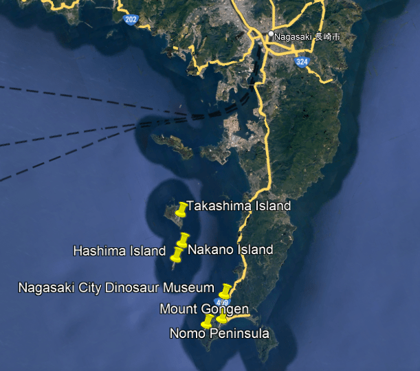 Interesting to note that the Nagasaki Dinosaur Msueum is right next to the Nomo Peninsula.