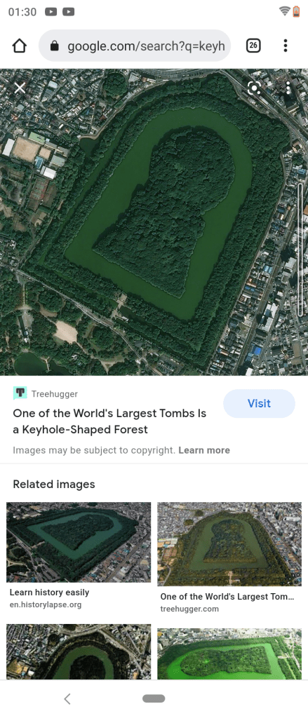 JM also sent this screenshot of the keyhole shapes known as Kofun, of what are described as megalithic tombs found mainly in Japan, but other parts of northeast Asia.