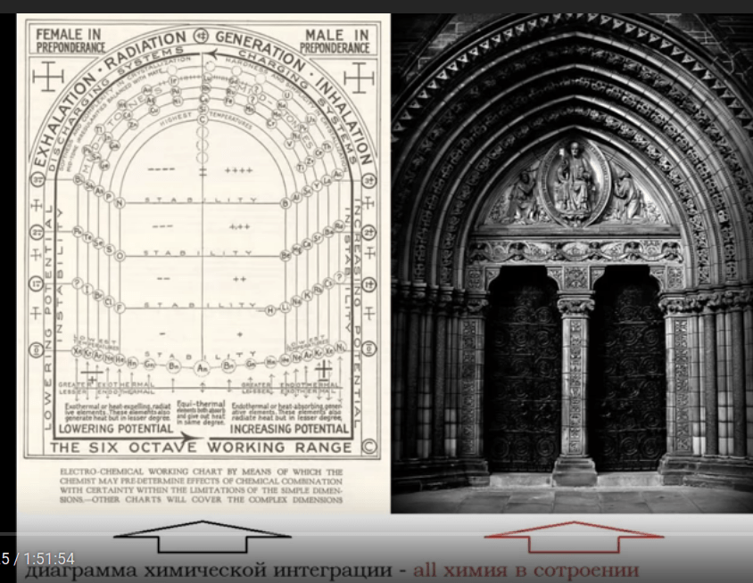 …and the similarity both have to Walter Russell’s diagram showing what looks like a relationship between cathedral doors and octaves, the intervals between one musical pitch and another with double its frequency.