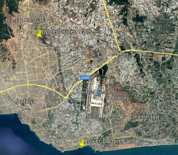 Interesting to note the Antalya Airport is located between the Upper and Lower Falls…