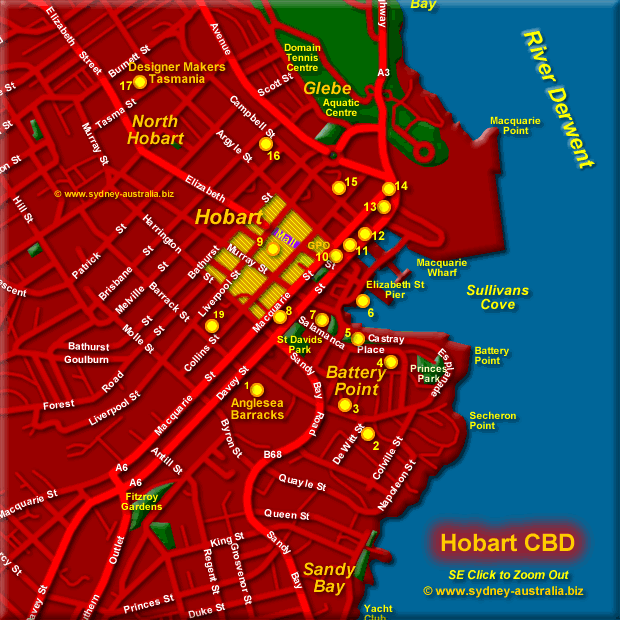 Battery Point is just across a small harbor from where the Hobart Cenotaph is located, and south of the Central Business District.
