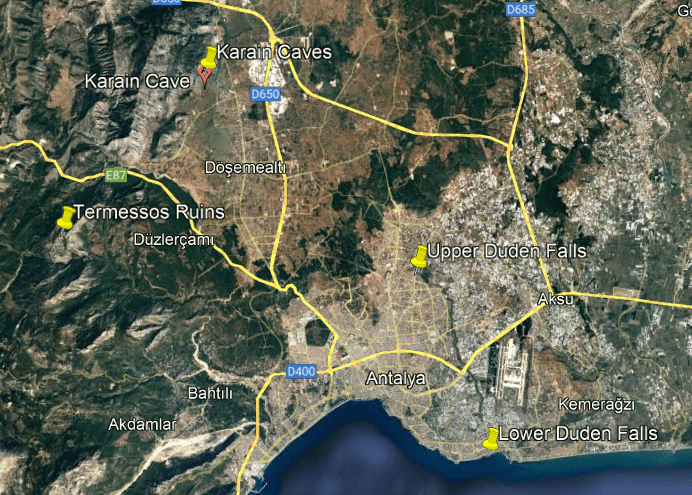 Karain is 19-miles, or 30 kilometers, away from Antalya Province in Turkey.