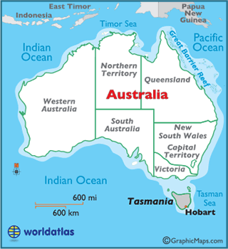 Tasmania is an island state of Australia, located 150-miles, or 240-kilometers, to the south of the Australian mainland, separated from it by the Bass Strait.