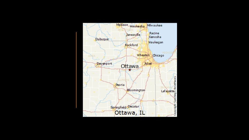 The city of Ottawa in Illinois was incorporated in 1853, and is located at the confluence of the Illinois and Fox Rivers.