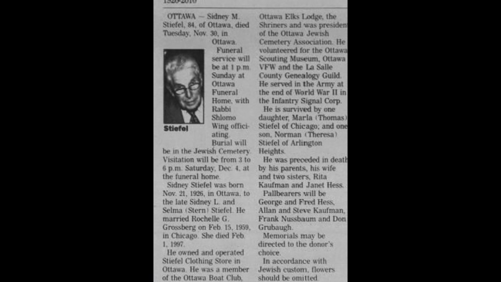He included an obituary he found for the man his relatives told him owned the largest home in town (now demolished) and the local department store, Sidney Stiefel.