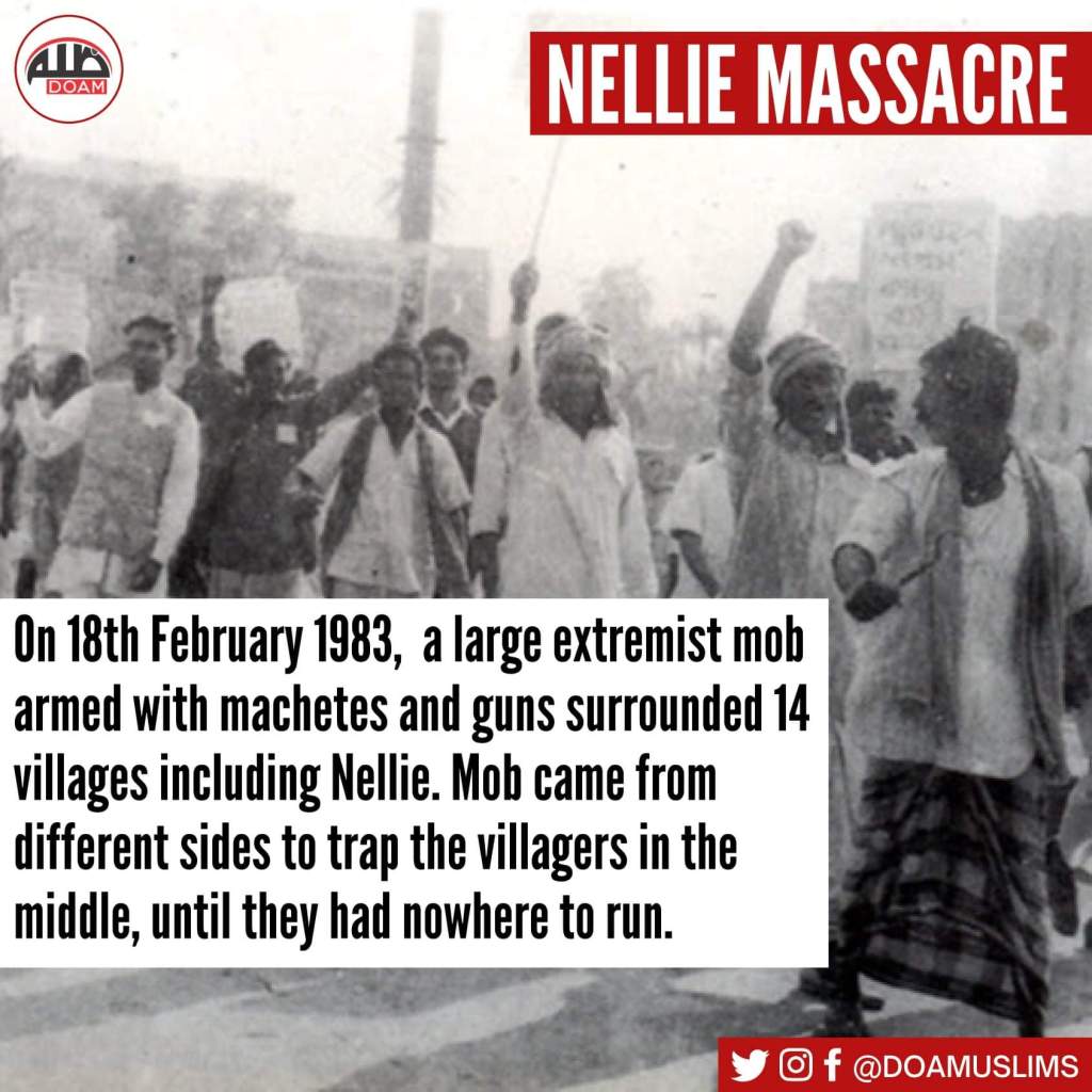 The Nellie Massacre took place on February 18th, described as one of the worst pogroms since World War II, which is a violent riot aimed at the massacre or expulsion of an ethnic or religious group.
