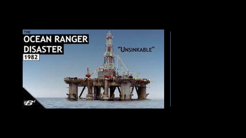 The Ocean Ranger oil platform sunk during a storm off the coast of Newfoundland, killing all of the 84 rig workers on it at the time.