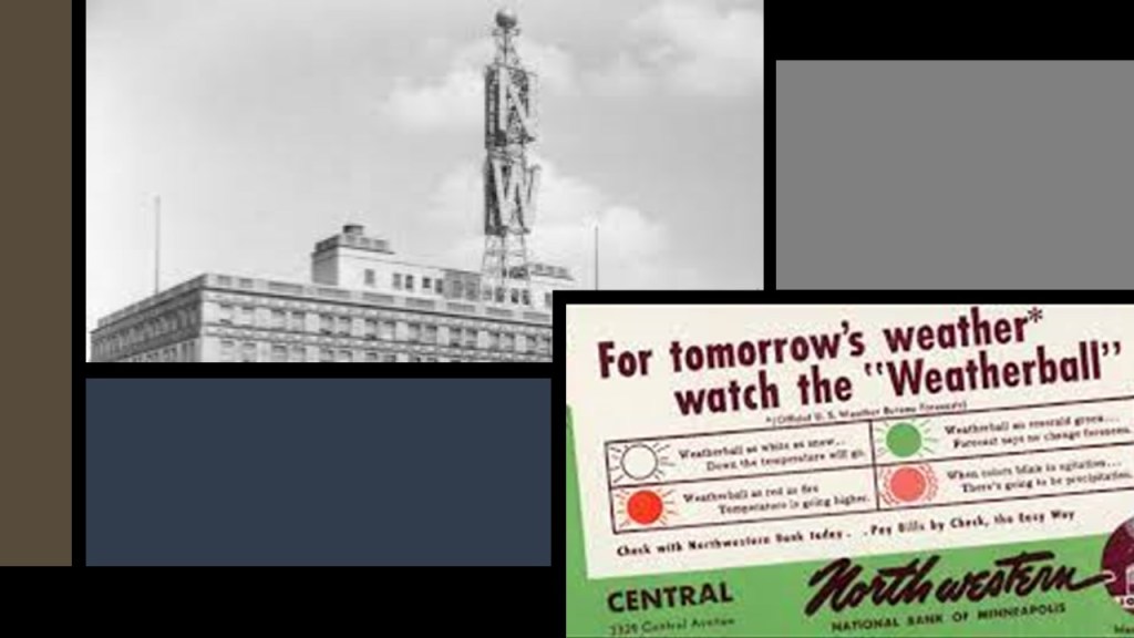 Minneapolis’ famous “Weatherball” sat on top of the Northwestern National Bank Building, which predicted the weather based on the color it was displaying, was also destroyed in the fire.