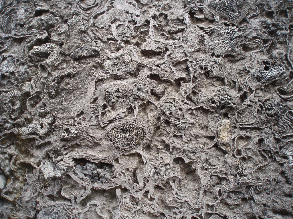 Coral reefs are formed by colonies of coral polyps held together by calcium carbonate, a chemical compound which includes calcium, carbon, and oxygen.