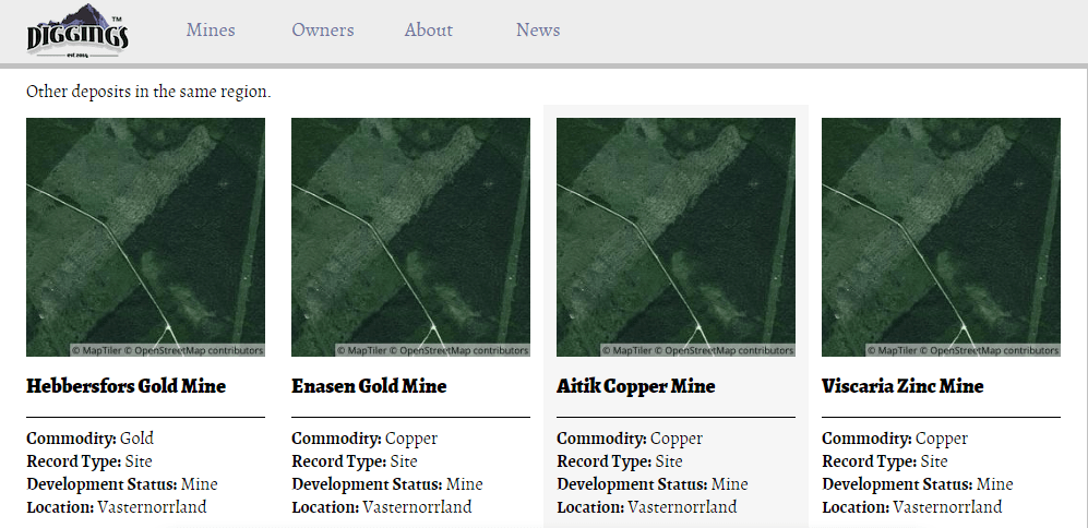 There are also four other active mines in Vasternorrland County, including mines for gold, copper, and zinc.