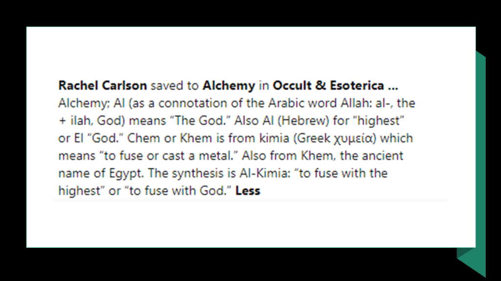 He further explains that by substituting modern elements for the ancient letters, although we share the first three leters of our Creator’s name, the fourth letter of our chemical name – “carbon” – sets us apart from God and makes us “real” in our world.