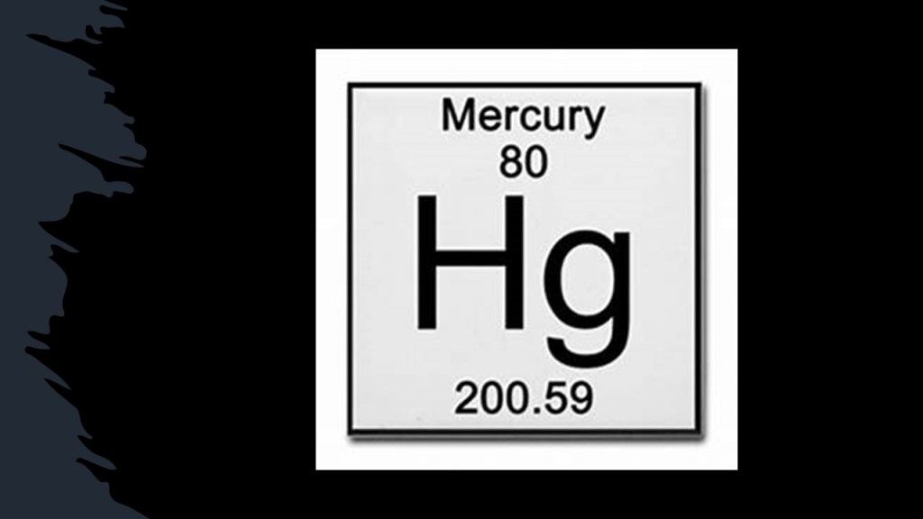 The symbol for the chemical element mercury is “Hg” from the Greek word meaning “liquid silver,” with the atomic number of 80.