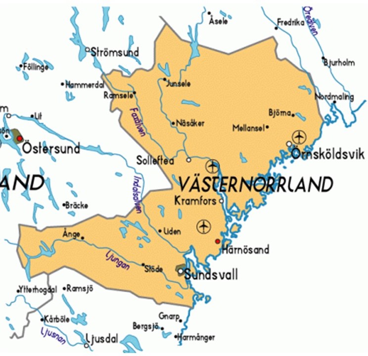 Next on the alignment from Trondheim across these mountains is Sundsvall, a port by the Gulf of Bothnia between Sweden and Finland.
