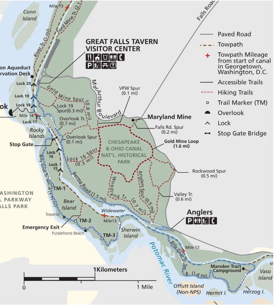 Access to go see the Great Falls themselves, at least when I was young, was cut off after the effects of Hurricane Agnes in 1972 destroyed the bridge going out to where you could view them from the Maryland-side.