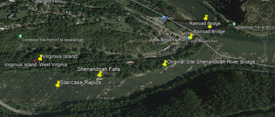 There’s a set of railroad bridges crossing the Potomac River at the confluence of the Potomac and Shenandoah for two different lines.