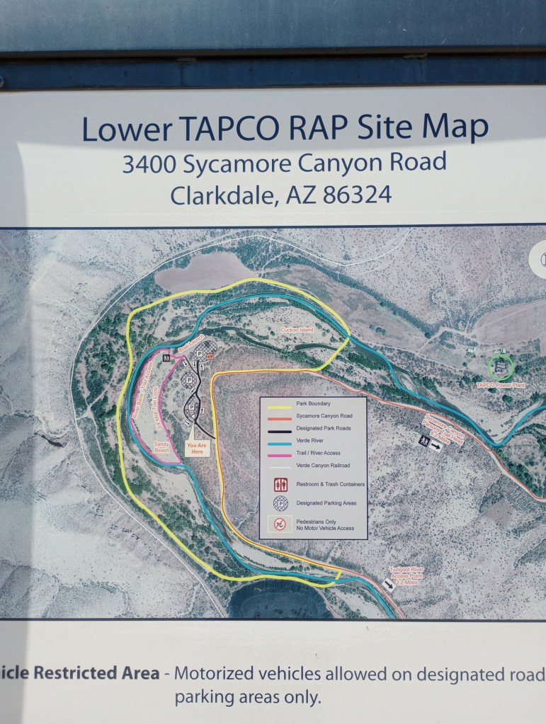 I first spotted the train trestle when I was driving on the other side of this location down towards the “Verde River Access Point TAPCO,” an historic power plant that operated from 1917 to 1958 – apparently in a river bend – in a place called “Sycamore Canyon,” yet another tree reference in a place loaded with tree references.