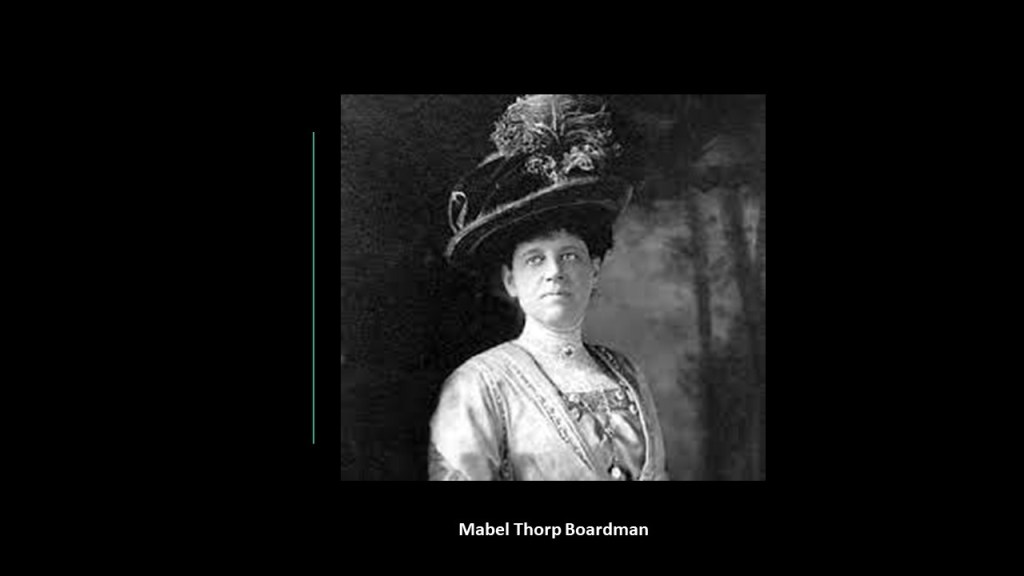 Mabel Thorp Boardman stepped into the leadership role, and we are told worked with senior government officials; military officers; financiers; and social workers.