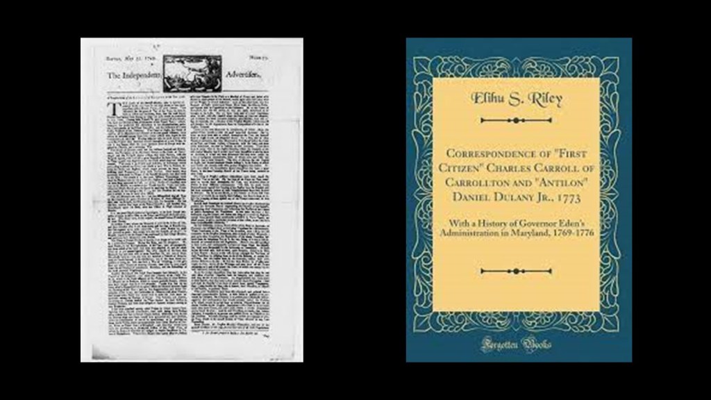 Daniel Dulany the Younger, a noted lawyer and British loyalist politician in Maryland, opposed Carroll in these written debates, writing as “Antillon.”