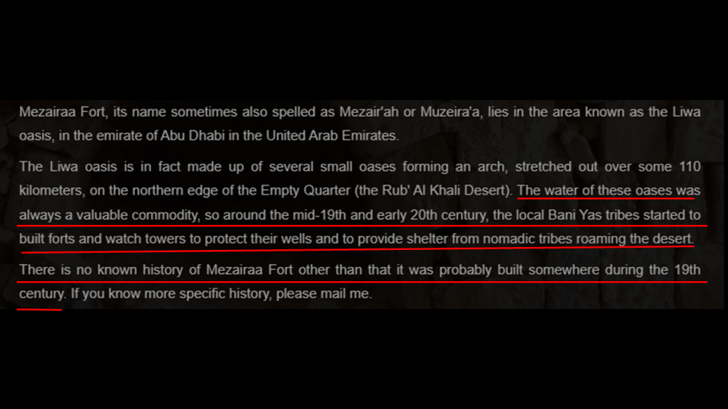 The same story is given for the altogether nine historical forts in the Liwa Oasis.