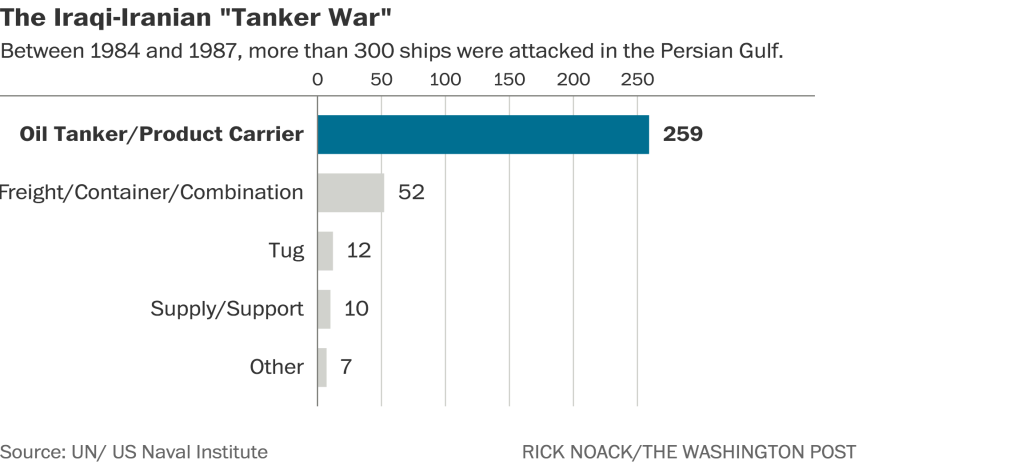 The Strait of Hormuz has been site of many military conflicts and attacks over the years, including but not limited to the 1984 Tanker War that took place during the Iran-Iraq War when Iraq attacked the oil terminals and tankers on Iran’s Kharg Island in the Persian Gulf, said to have been done to provoke Iran into retaliating with extreme measures, and lasted for several years.