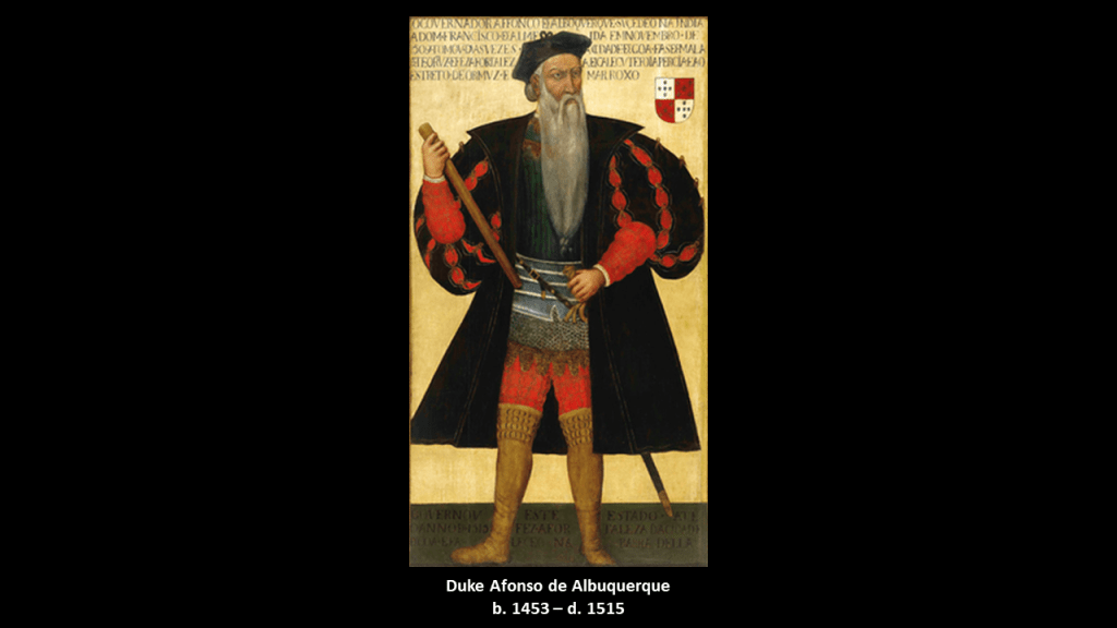 Among other goals of conquest, he sought to secure the spice trade for the Portuguese Empire, which include control of Malacca in the Spice Islands; Goa in India: Hormuz in the Strait of Hormuz; and the port city of Aden in Yemen on the Gulf of Aden near the Red Sea that we saw in the last part of this series.