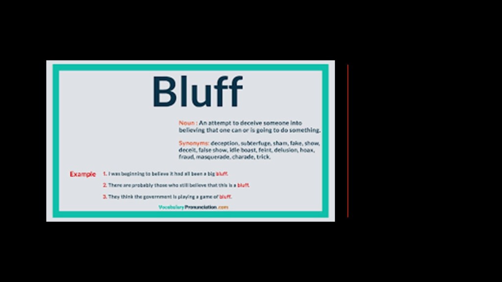 Another meaning of the word “bluff” is a deception, or an attempt to deceive.