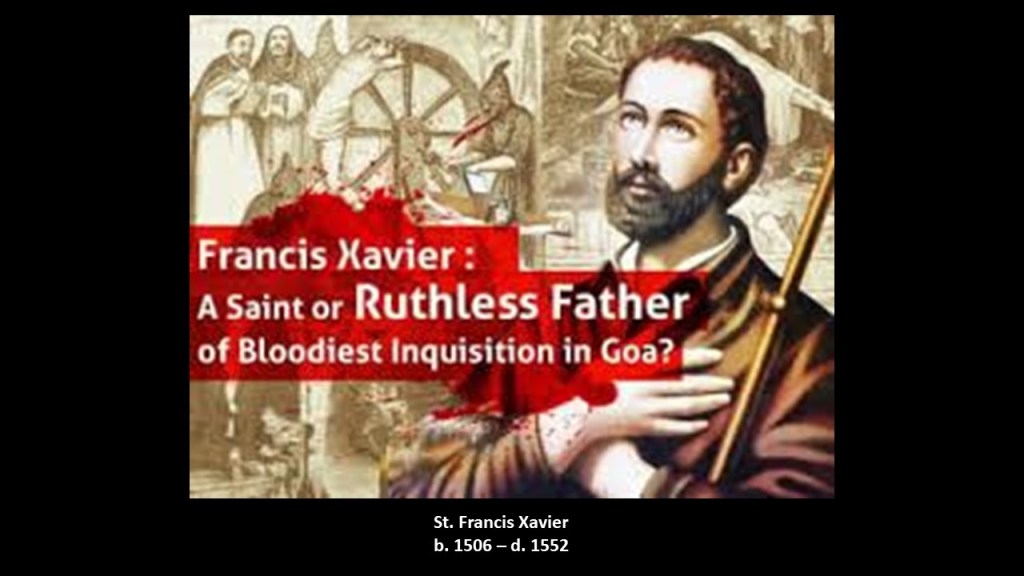 The inquisition started functioning in Portugal in 1541, and Francis Xavier laid the foundation for the Inquisition to be established in Goa after he arrived there in order to impose the Catholic Church’s policies and mass conversion on the population there.