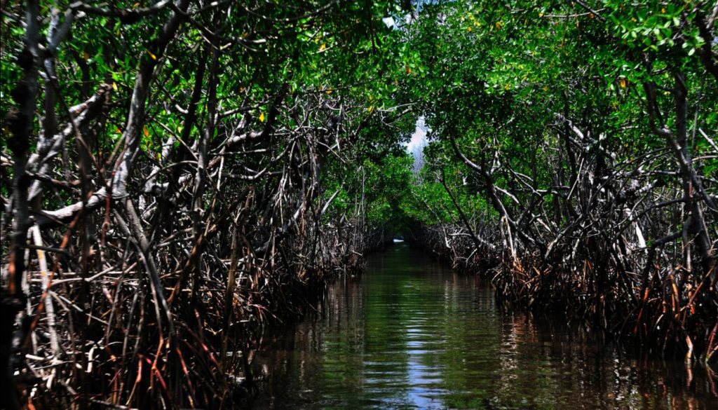 Mangrove swamps are coastal wetlands characterized by these salt loving trees and shrubs that are typically found in estuaries, where salt water meets freshwater.