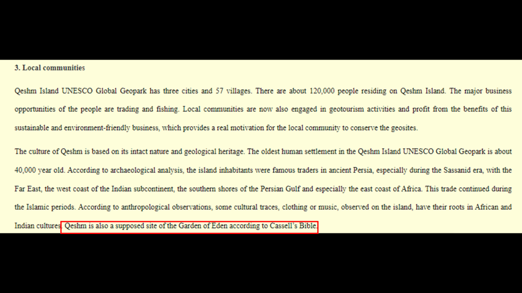 And like the vicinity around Aden in southern Yemen being a possible candidate for the biblical “Garden of Eden,” also mentioned in part 2 of this series, Qeshm was mentioned as a supposed site of the Garden of Eden in Cassell’s Bible.