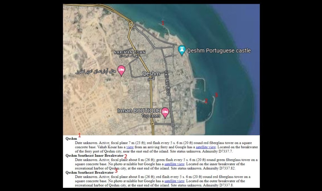 On the east end of Qeshm Island in the vicinity of the old Portuguese Castle/Fort are three lighthouses.
