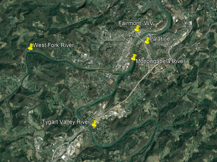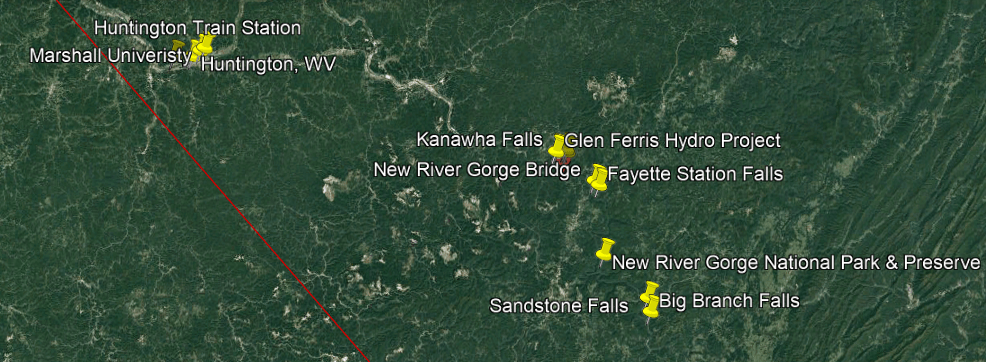 He found the same thing happening with the New River Gorge in West Virginia as a hub, with many alignments between all three of these types of locations going out in all directions.