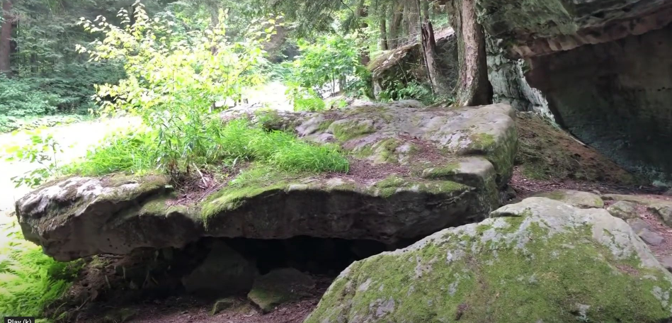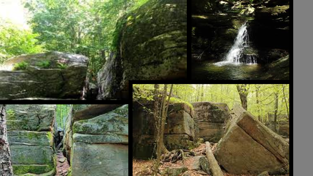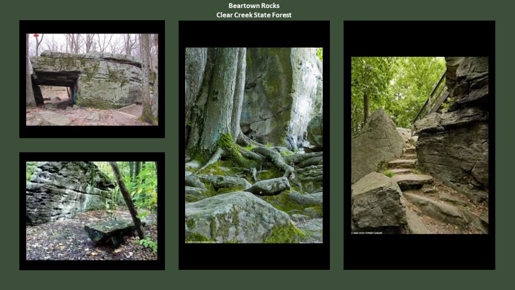 The nearby Bilger’s Rocks in Clearfield County’s Bloom Township near the town of Grampian, and is larger stone-city than what is found at Panther Rocks.