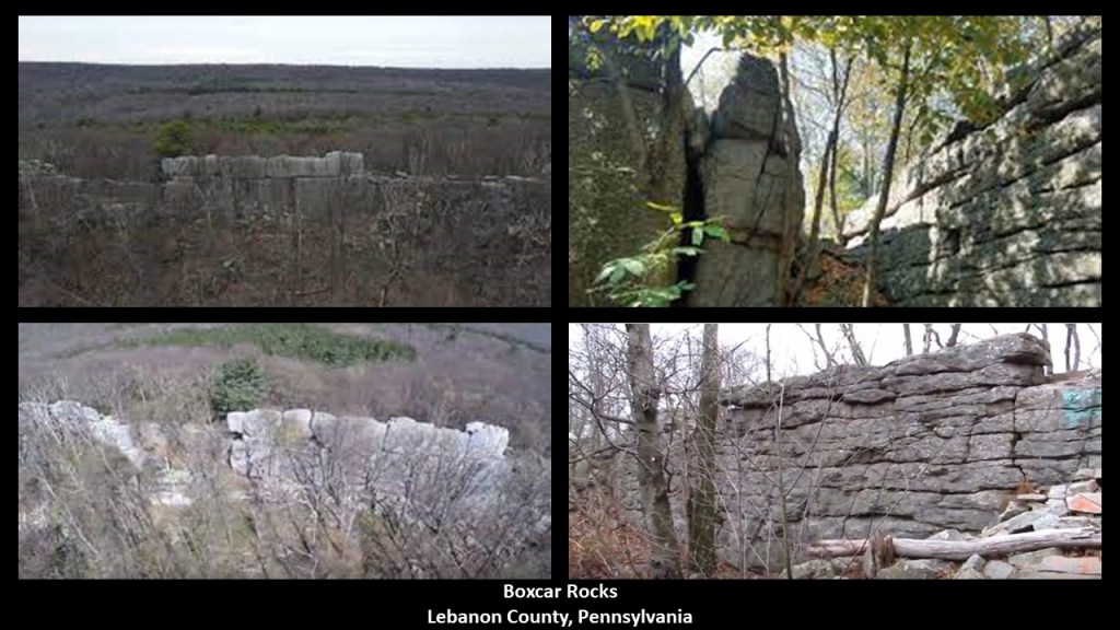 Like “Boxcar Rocks,” also known as the “Chinese Wall,” and the “High Rocks,” on Gold Mine Road in Cold Spring Township in Lebanon County.