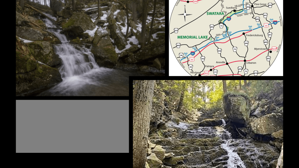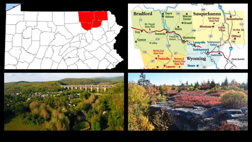 These locations are in Pennsylvania’s “Endless Mountains,” a region of northeastern Pennsylvania that are not considered true mountains, but a dissected plateau on the Allegheny Plateau.