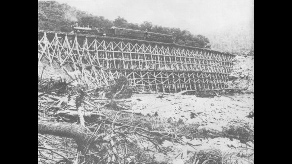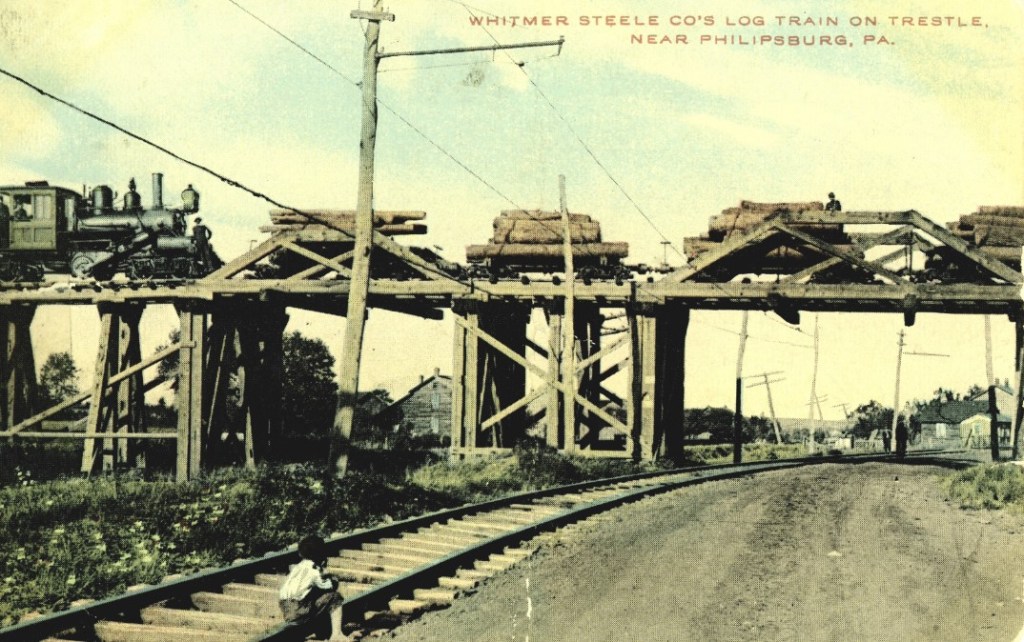 There was much logging going on from this region, so the “Susquehanna Boom” was said to have been built in the 1850s across the West Susquehanna River at Williamsport, a system of cribs and chained logs designed to catch and hold floating timber until it could be processed, and logging railroads built to transport the lumber, to the tune of 45-cars per day until logging ended here in 1911, when all the trees were gone.