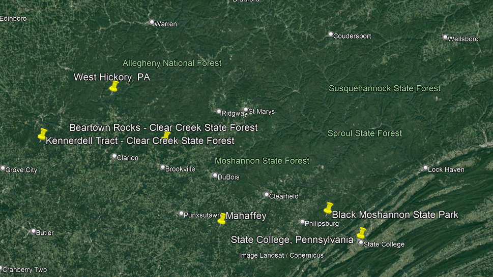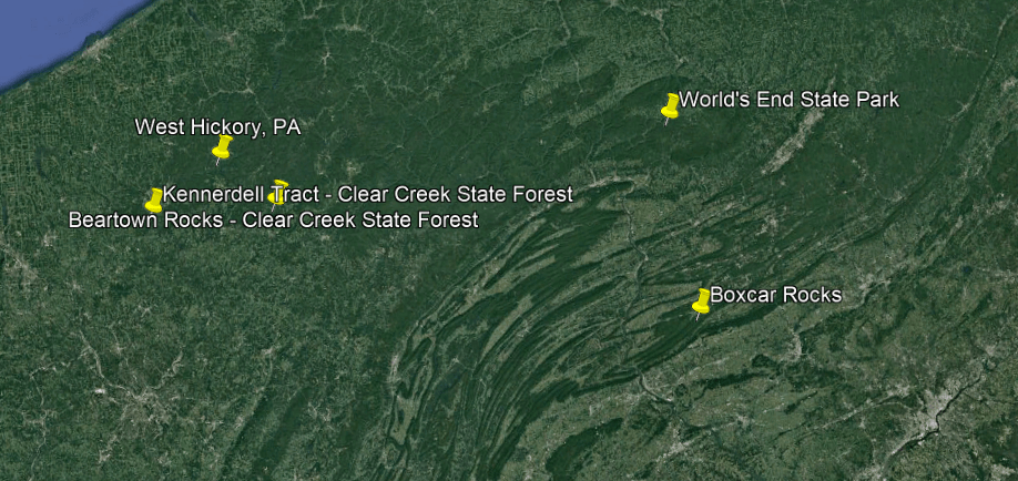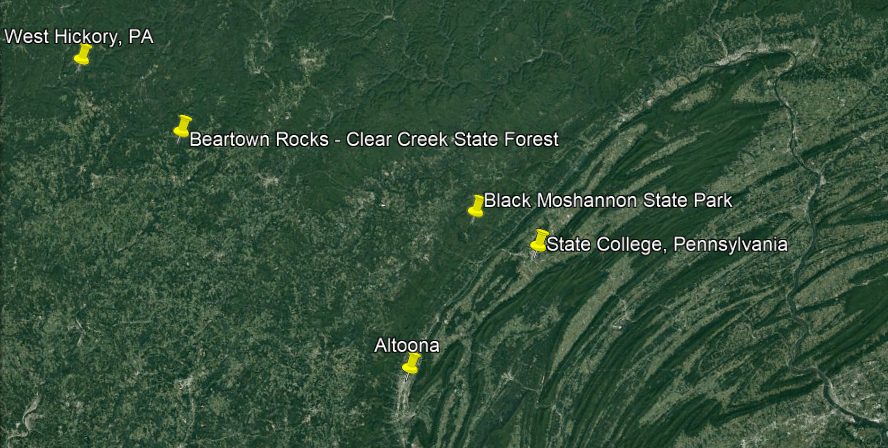 Aaron also directed my attention to Panther Rocks in Moshannon State Forest, with its main offices in Penfield, Pennsylvania in Clearfield County’s Huston Township.
