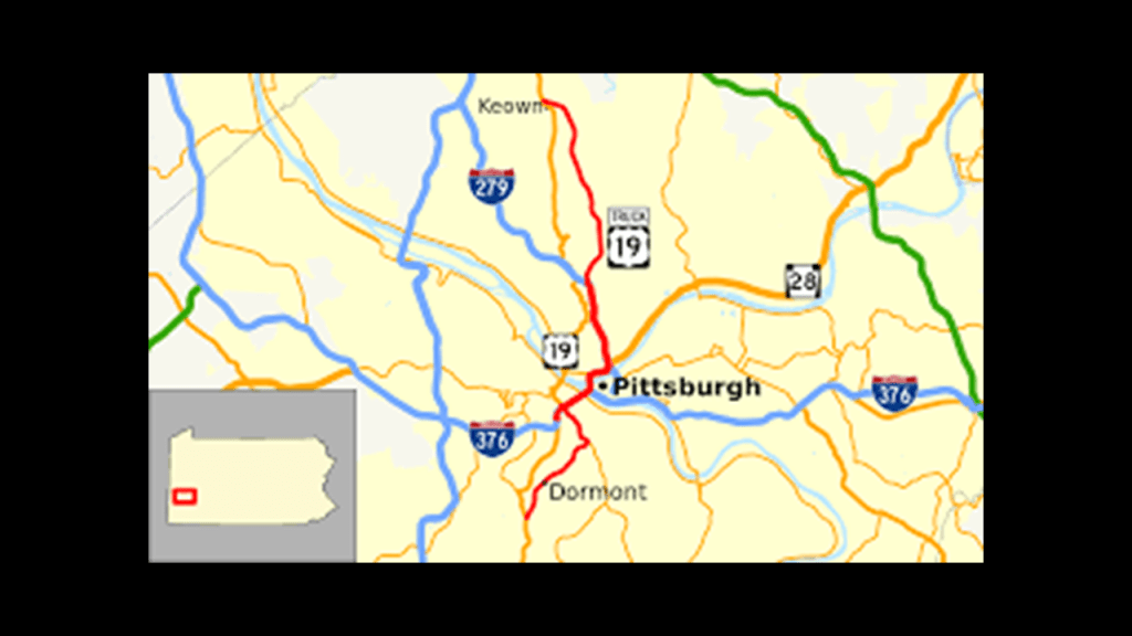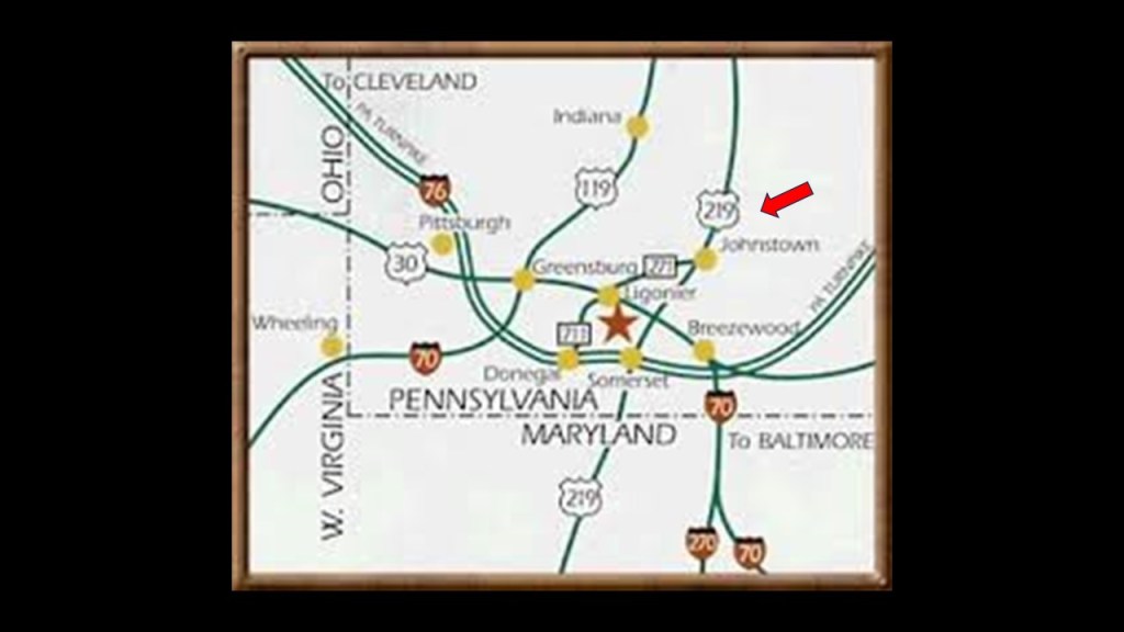 This is the same U. S. Route 219 we saw in connection with Mahaffey Borough, located on U. S. Route 219 at the junction of the New York Central Railroad and the Hudson River Railroad.