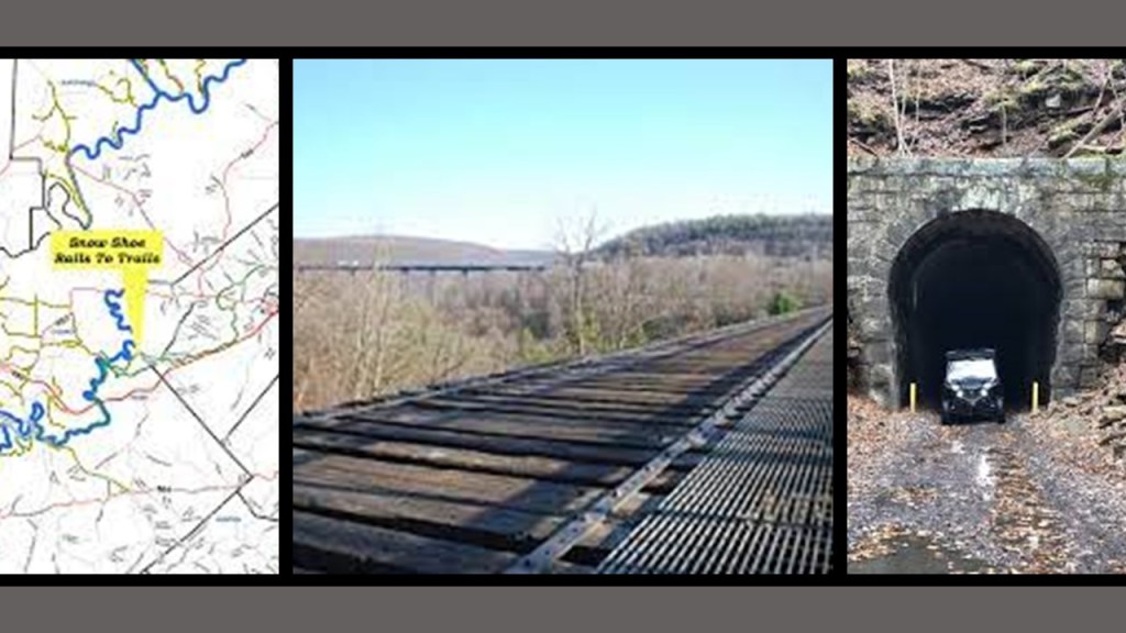 The “Snowshoe Rails-to-Trails” has 19-miles, or 31-kilometers, of abandoned railroad bed along 37-miles, or 60-kilometers, of legalized Snowshoe Township Roads for ATVS/UTVs.