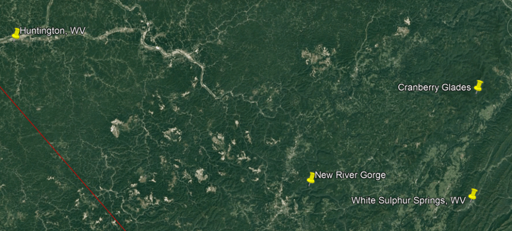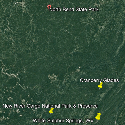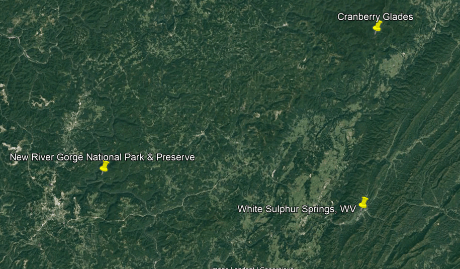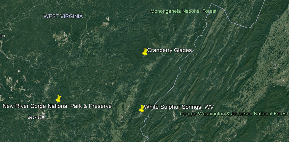 The Cranberry Glades Botanical Area is located close to both the New River Gorge National Park and Preserve, and White Sulphur Springs.