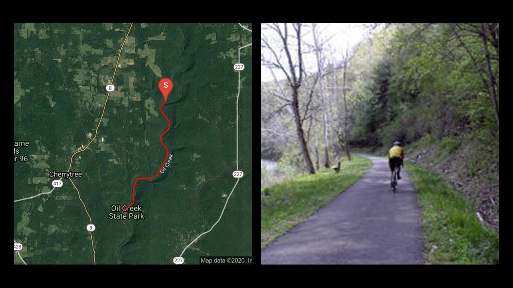 In the section of the park in Venango County, I found references to an historic railroad that ran along-side the curvy Allegheny River in the Kennerdale Tract of the Clear Creek State Park in Venango County that is now part of the hiking trail system here.