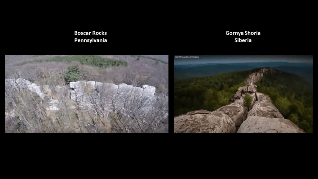 My starting point for the research in this post are places in Pennsylvania that Aaron sent me that he had identified as looking like megalithic stone structures