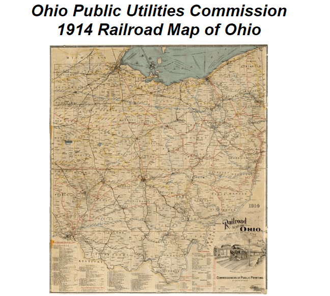So he sent me a link he found when he looked as well of a 1914 Railroad Map of Ohio from the Ohio Public Utilities Commission showing all the railroads in Ohio.