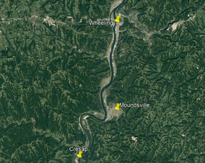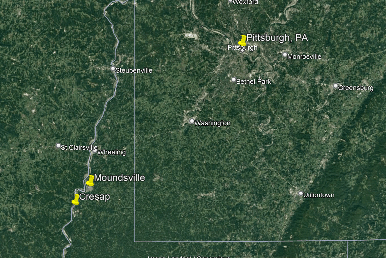 Criel Mound in South Charleston West Virginia, a short distance as the crow flies of of 41-miles, or 66-kilometers, from Huntington.