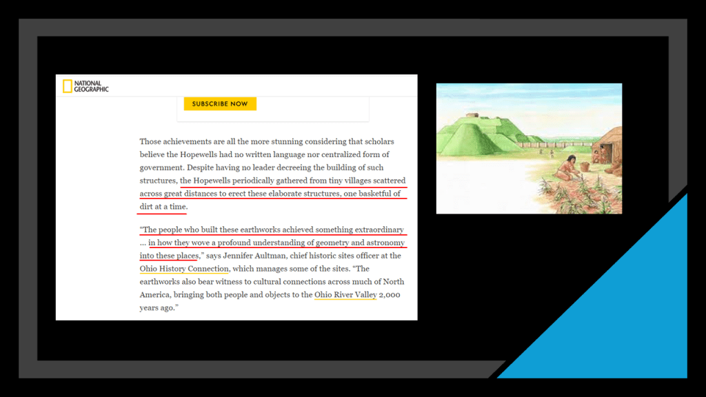 So this acknowledges the presence of giants here who were Mound Builders, but shrouds what happened to them in mystery, just like the lost Atlantis, saying we don’t know who they were, or really anything about them, except that they were a superior people.