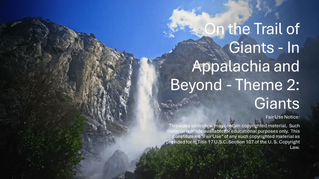 One thought on “On the Trail of Giants, in Appalachia and Beyond – Theme 2: Giants”